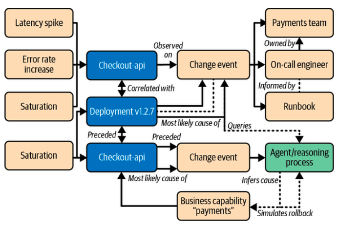 一个构建良好的上下文图(Context Graphs),可以让这样的查询得到即时解决:“昨晚 us-east-1 的延迟峰值,最有可能是谁部署的哪个变更触发的?”