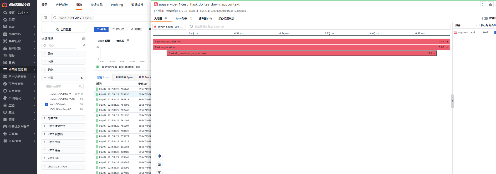 - 链路数据可正常上报到观测云