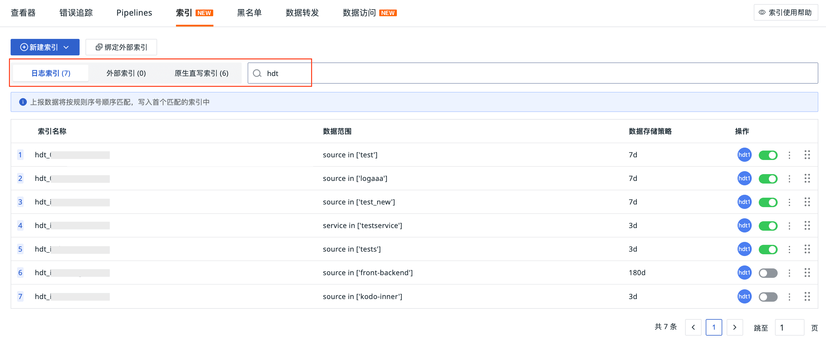- 智能搜索:「日志查看器 > 索引」新增索引名称搜索功能,输入关键词即可秒级过滤,系统自动统计各索引类型的返回数量,并自动定位至数据量最多的索引Tab,减少手动切换;