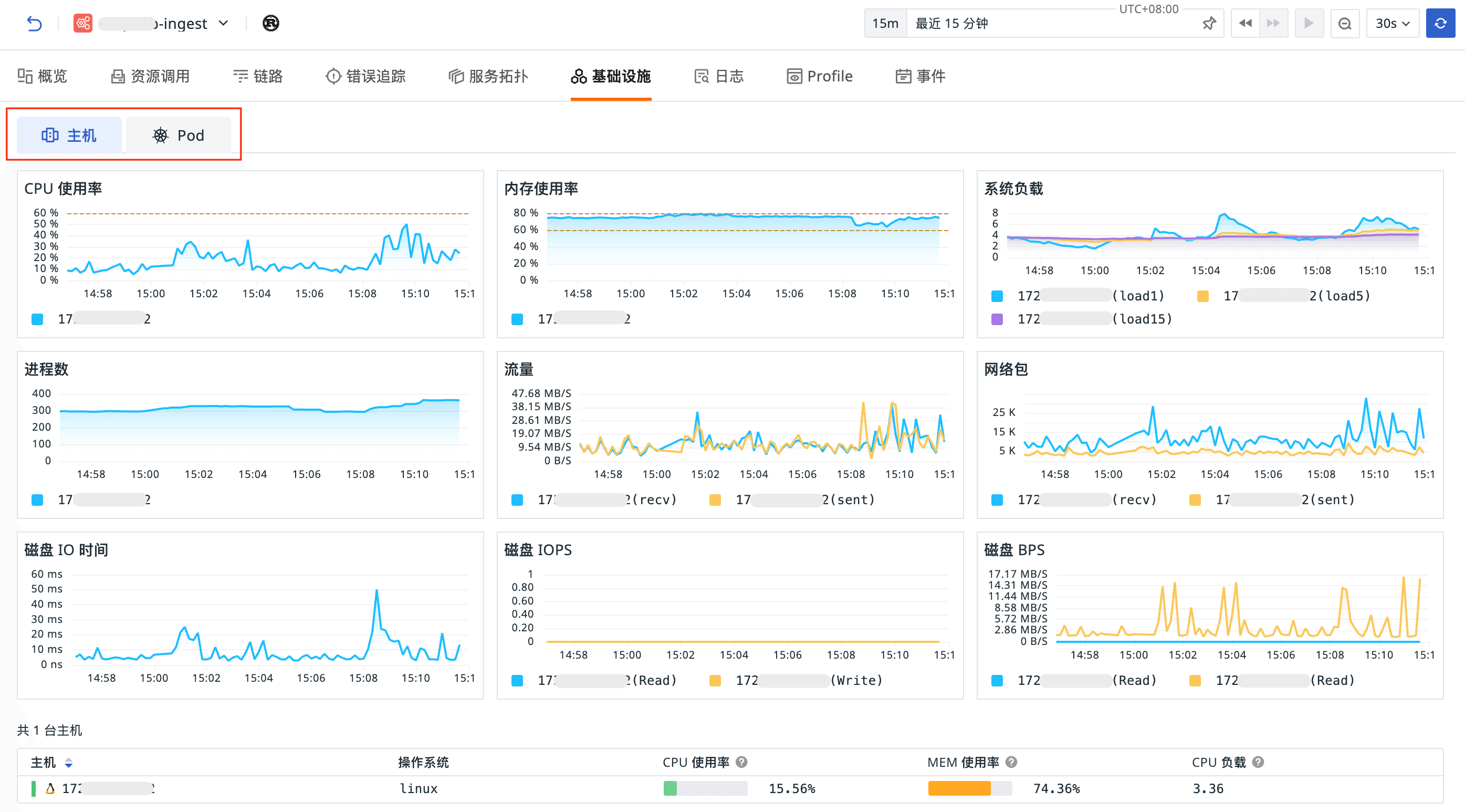 现在,你可以在 APM 中直接切换查看主机或 Pod 的基础设施状态,实现应用性能与资源消耗的双向关联分析。