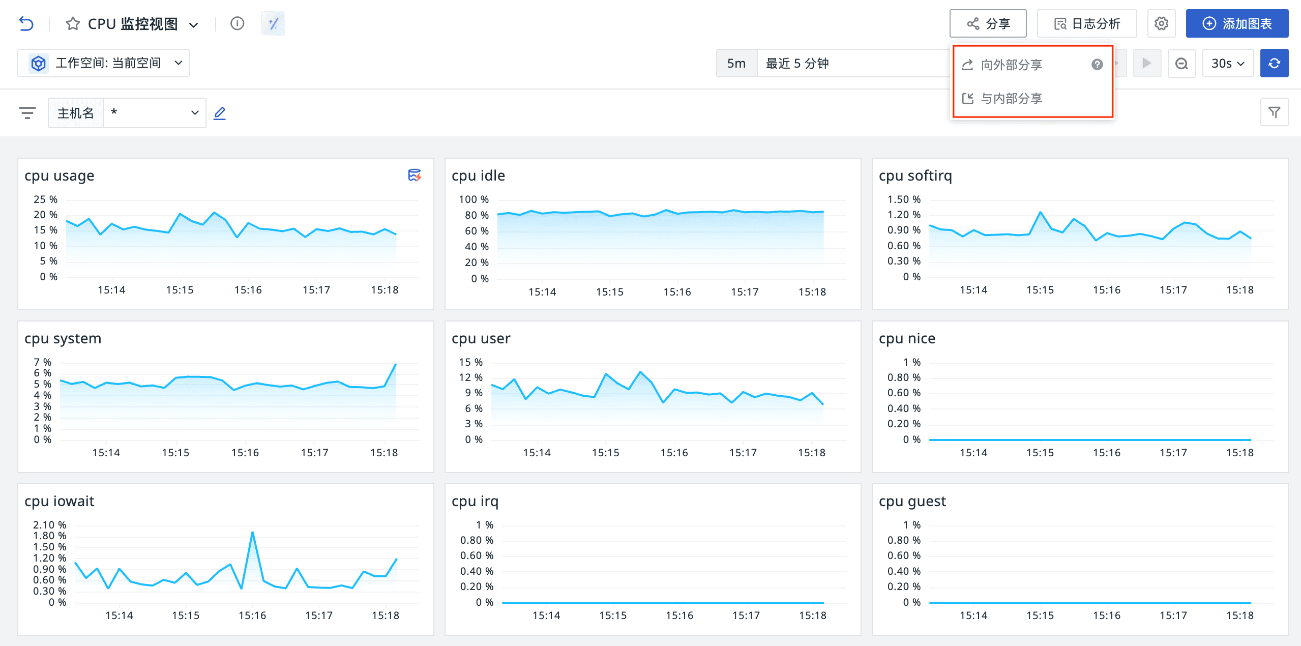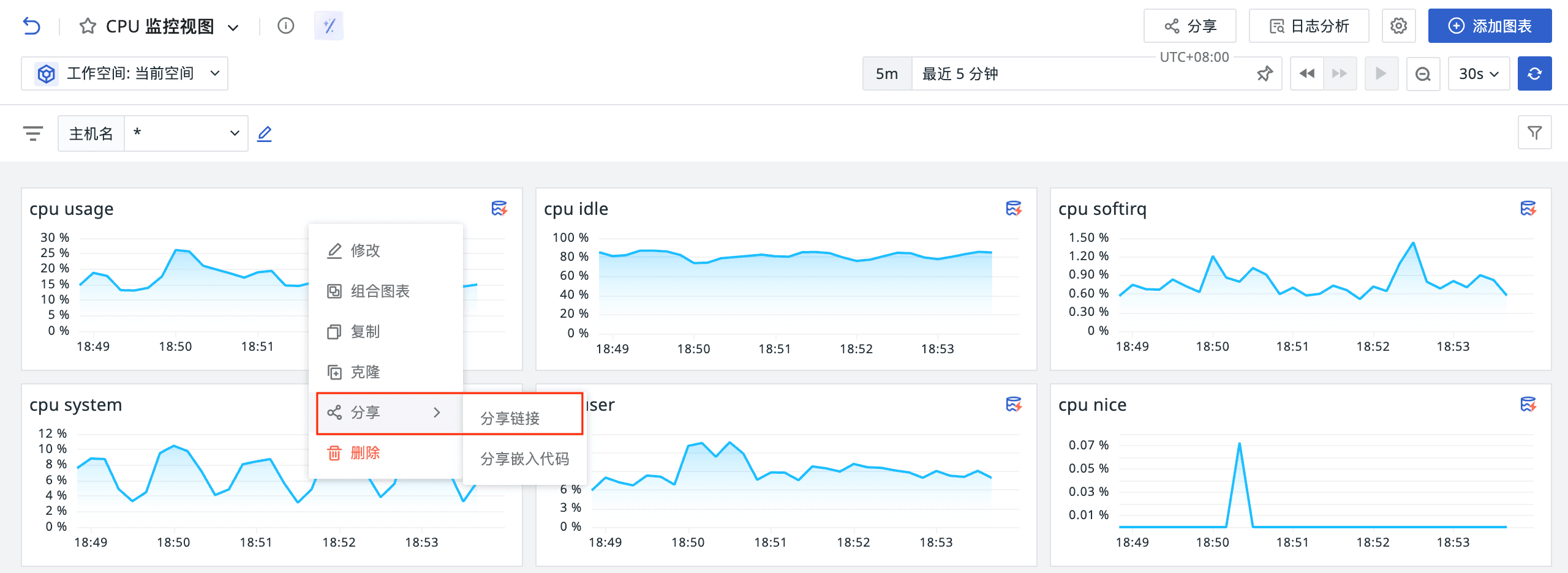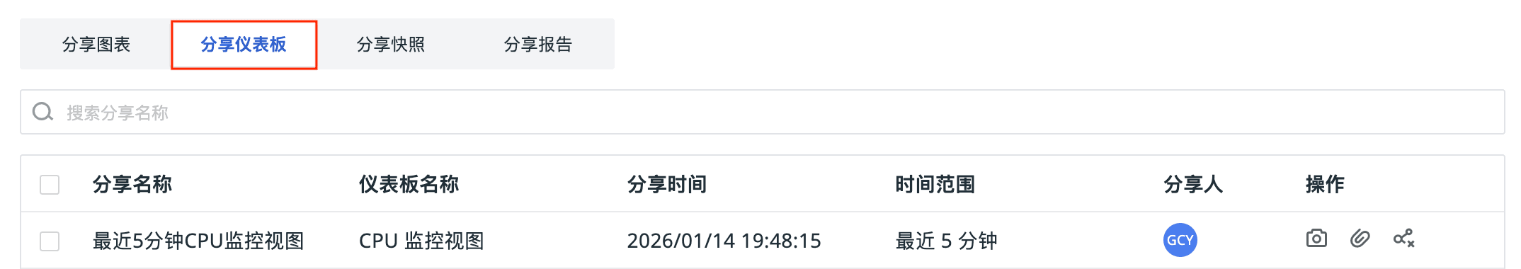 - 在仪表板页面点击「分享」按钮,或在「管理 > 分享管理」中统一管理所有分享内容。