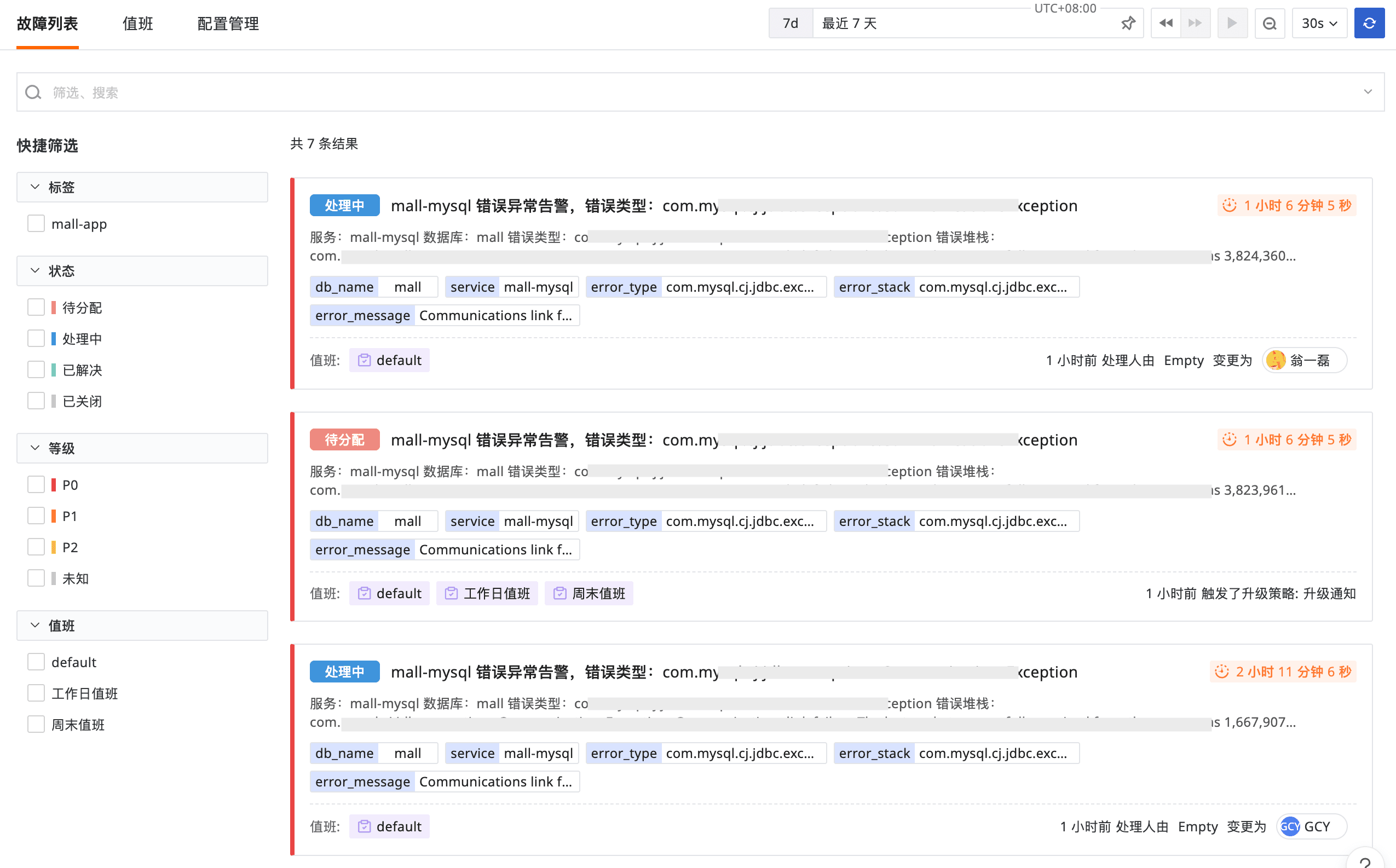 故障中心自动关联所有故障(Incident)有关上下文,状态一页看完,大幅减少 MTTR。