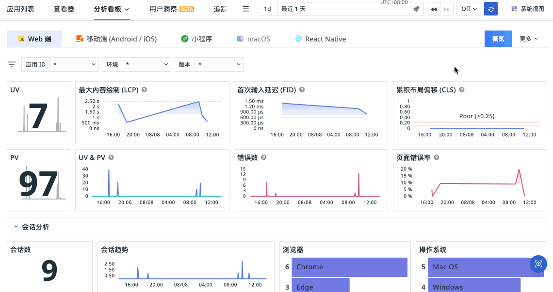 前端性能分析的实际例子:针对Web前端性能进行监控与分析,量化前端用户体验指标,采集网页JS错误及网络请求错误,快速定位Web前端的性能问题,辅助进行Web前端性能优化。