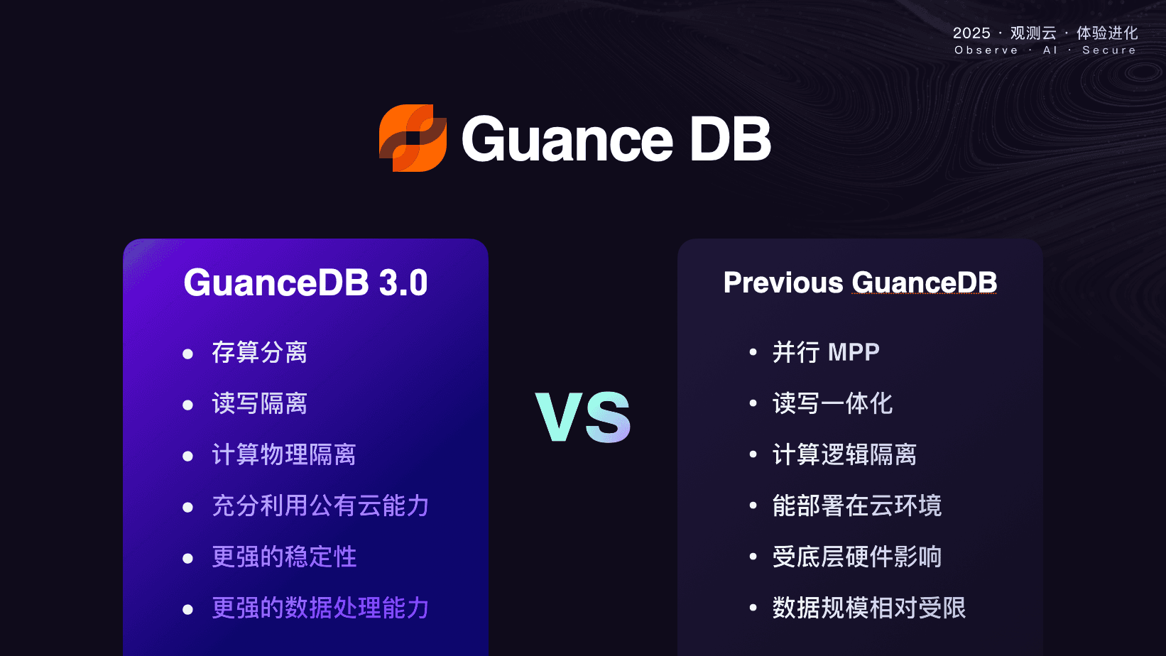 在 2025 年 5 月 13 日的观测云年度发布会上,观测云发布了 GuanceDB 3.0 全新数据引擎。这次更新标志着观测云进一步整合了云端安全能力,帮助用户进一步挖掘数据的价值。