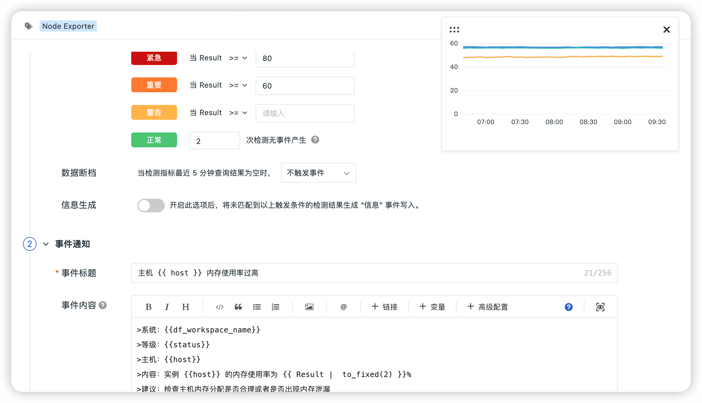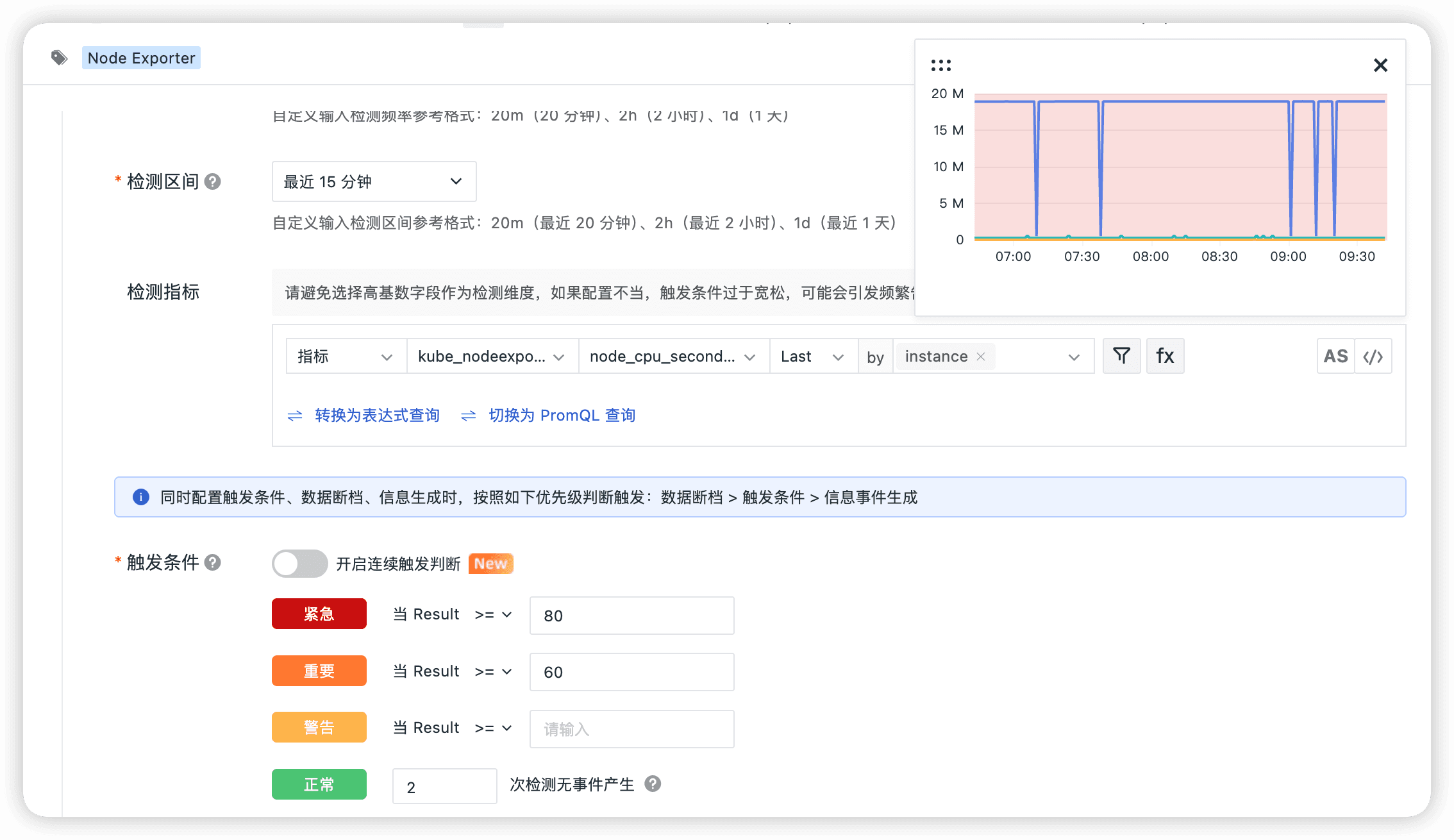 通过监控 Node Exporter 采集的主机关键指标,比如 CPU 使用率、内存和磁盘的 I/O 性能、网络流量和错误率、以及系统服务状态等,我们能够深入理解服务器的运行状况。这些指标覆盖了系统资源的使用情况、硬件健康状态、服务可用性以及网络效率,为我们提供了全面的系统性能视图。通过综合监控这些关键指标,可以及时发现并解决潜在的性能问题和故障,从而确保主机的高效运行和稳定性。这种持续的监控和分析对于维护服务器的最优性能和进行有效的容量规划至关重要。