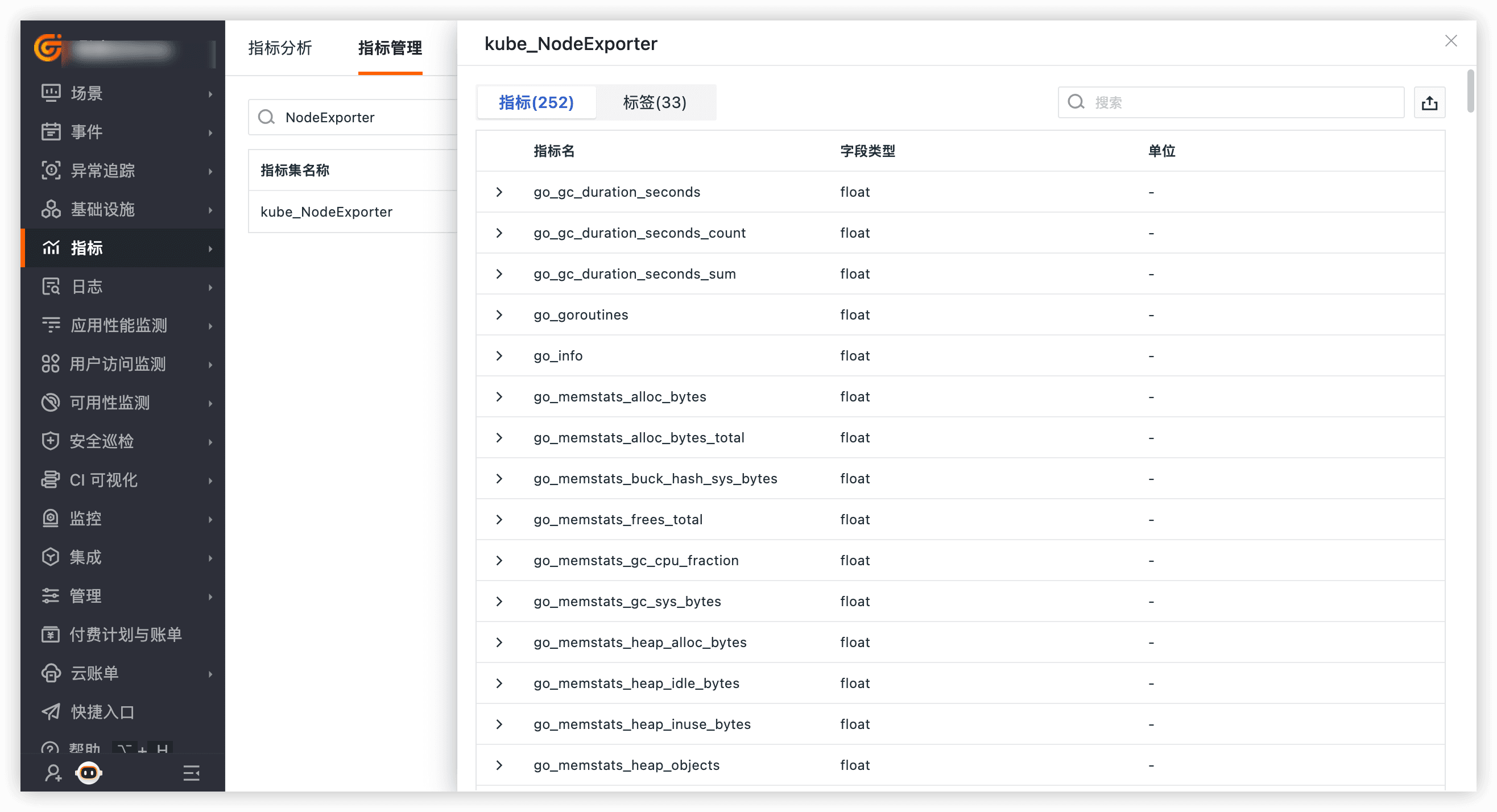 登录观测云控制台,点击「指标」 -「指标管理」,输入“NodeExporter”,就能查询采集到的指标。