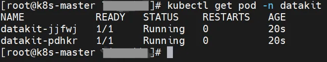 把 datakit.yaml 上传到可以连接到 Kubernetes 集群的主机上,执行如下命令。