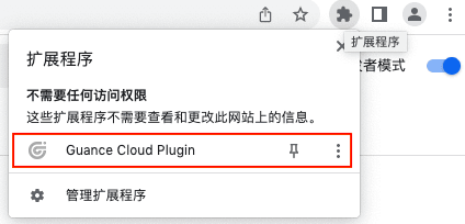 - 右上角点击图标「扩展程序」,找到「Guance Cloud Plugin」双击打开插件。