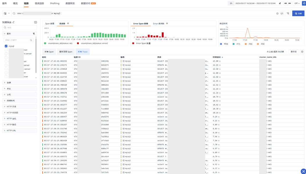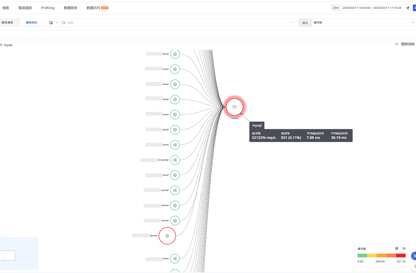 - 分析 MySQL 的请求与调用,很多服务都会调用 MySQL,每秒 5 万多请求调用