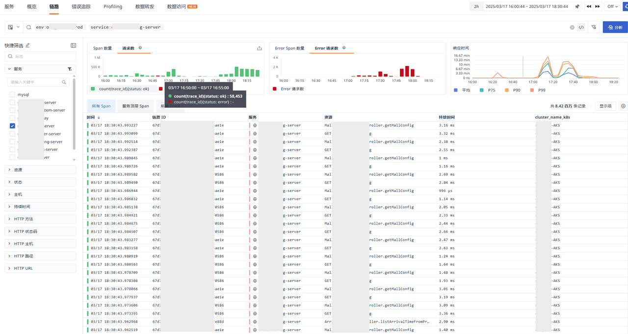 故障概述:用户反馈在 17:00 前后发生应用性能访问的故障,页面卡顿,数据加载不出,基于此进行了以下场景的分析。