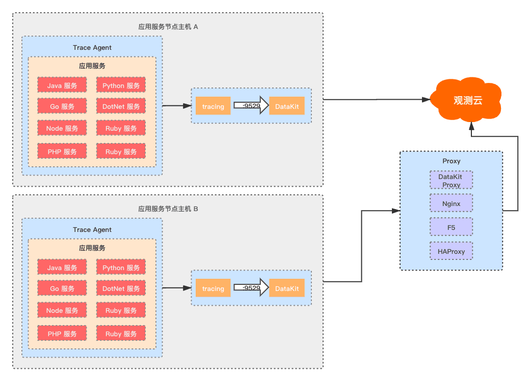 观测云拥有应用性能监测的能力,支持各种主流语言的技术栈,并兼容 OpenTelemetry,Skywalking,Jaeger,DDTrace 等等开源的 Agent,最佳部署方案是将 DataKit 部署在每一台应用服务器中,通过服务所在主机的 DataKit 后将数据打到观测云中心,能更好地对应用服务的服务器主机指标、应用日志、系统日志、应用服务链路数据等统一汇聚,进行各项数据的关联分析,而观测云应用性能监测主要功能包含服务,概览,链路,错误追踪,Profiling,应用性能指标检测等功能,本文主要基于观测云的应用监测能力,对用户故障场景进行分析实践。