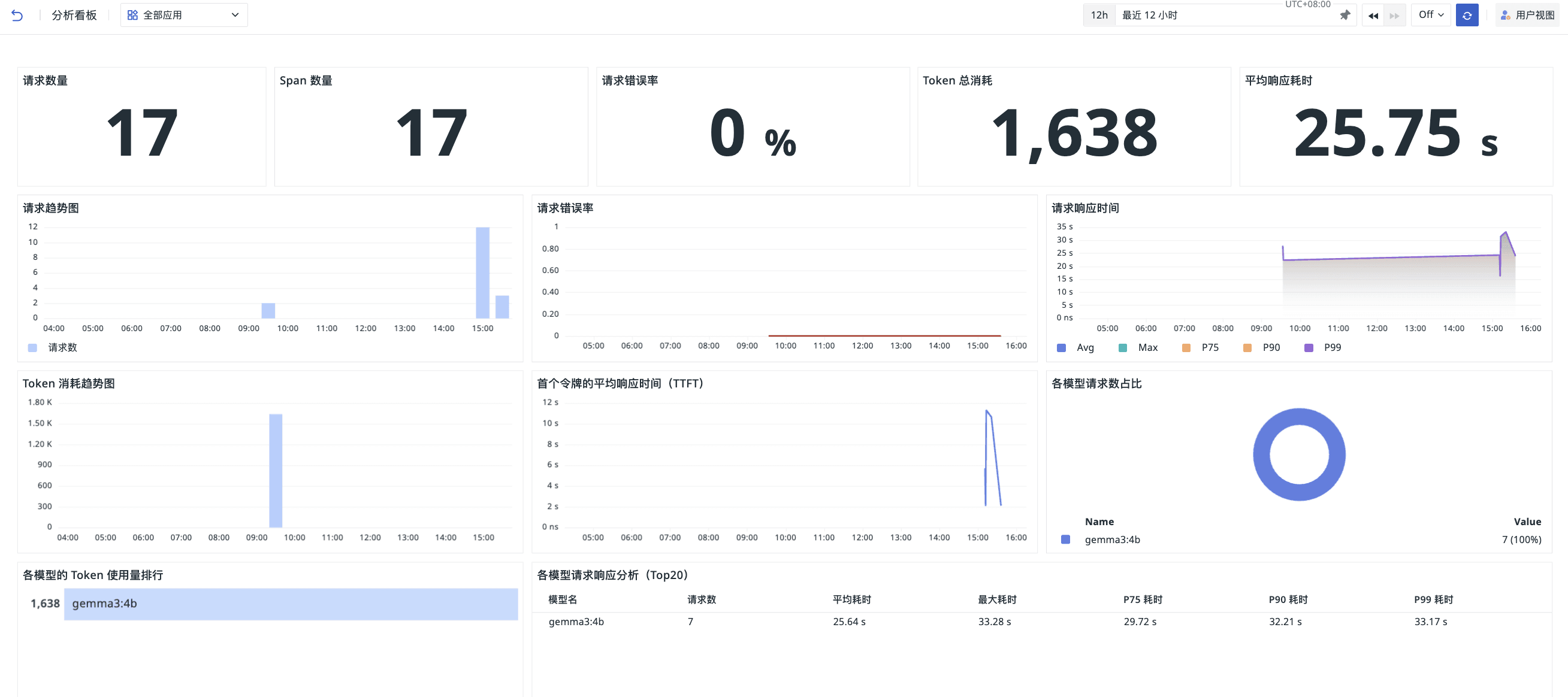 登录观测云控制台,点击「LLM 监测」 -「应用名称」 即可查看数据。