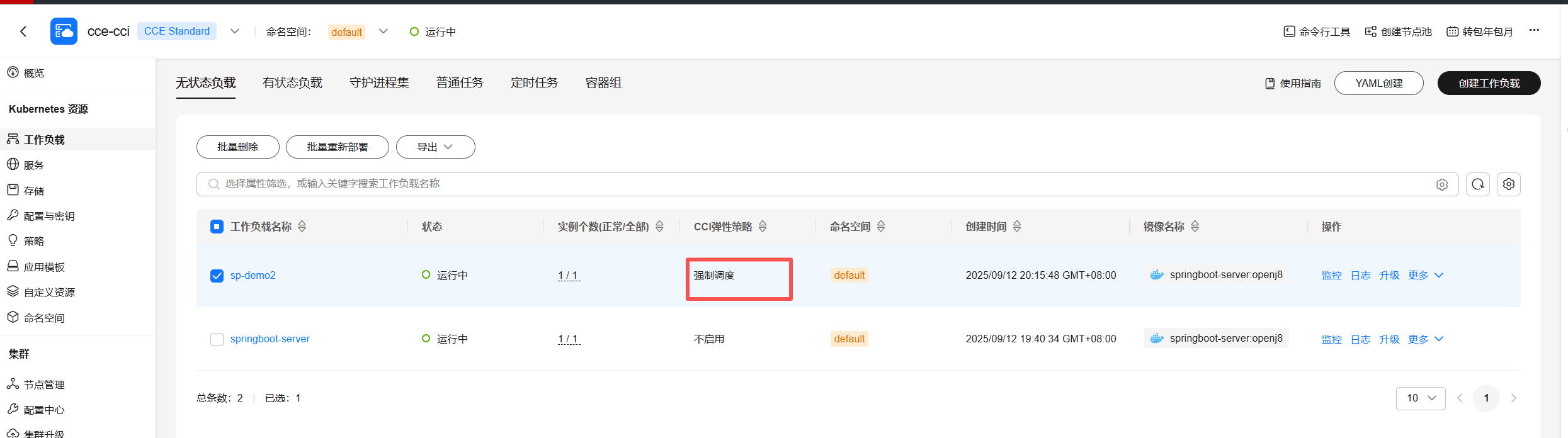 - 业务场景环境:华为 CCE 调度到 CCI 场景。