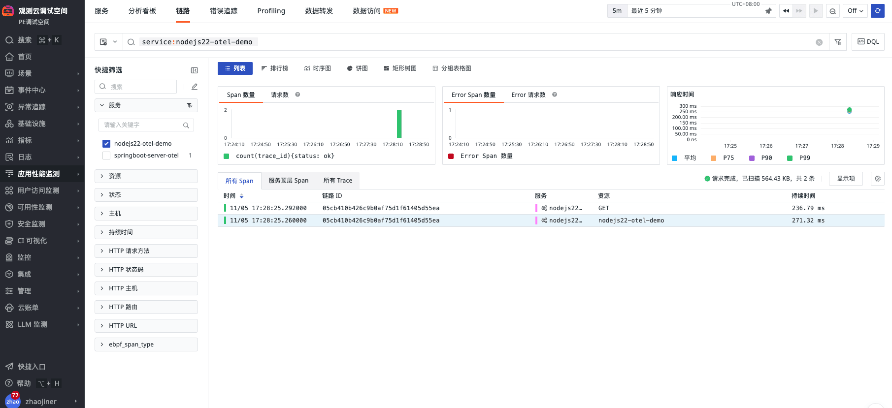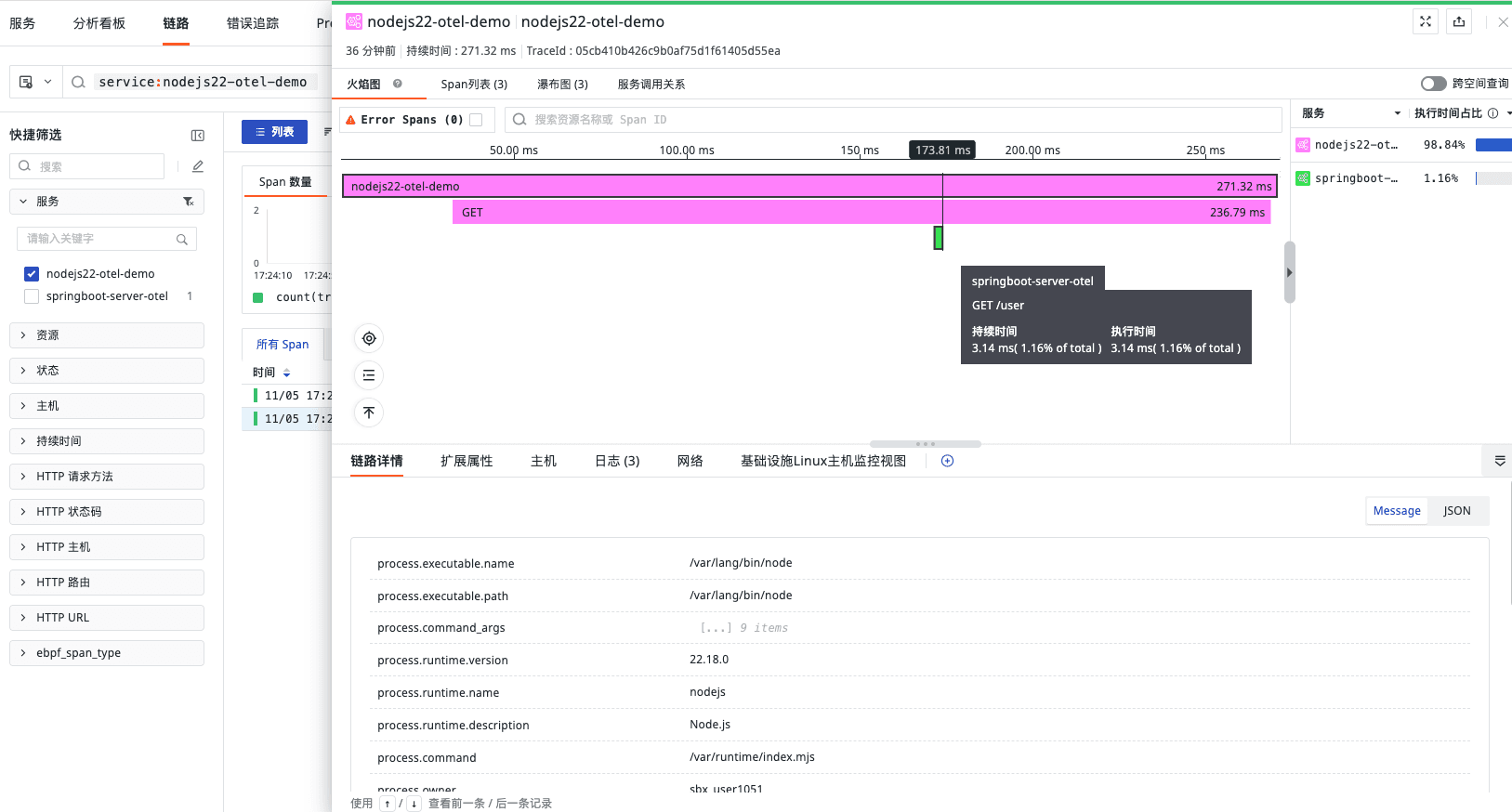链路上报效果如下: