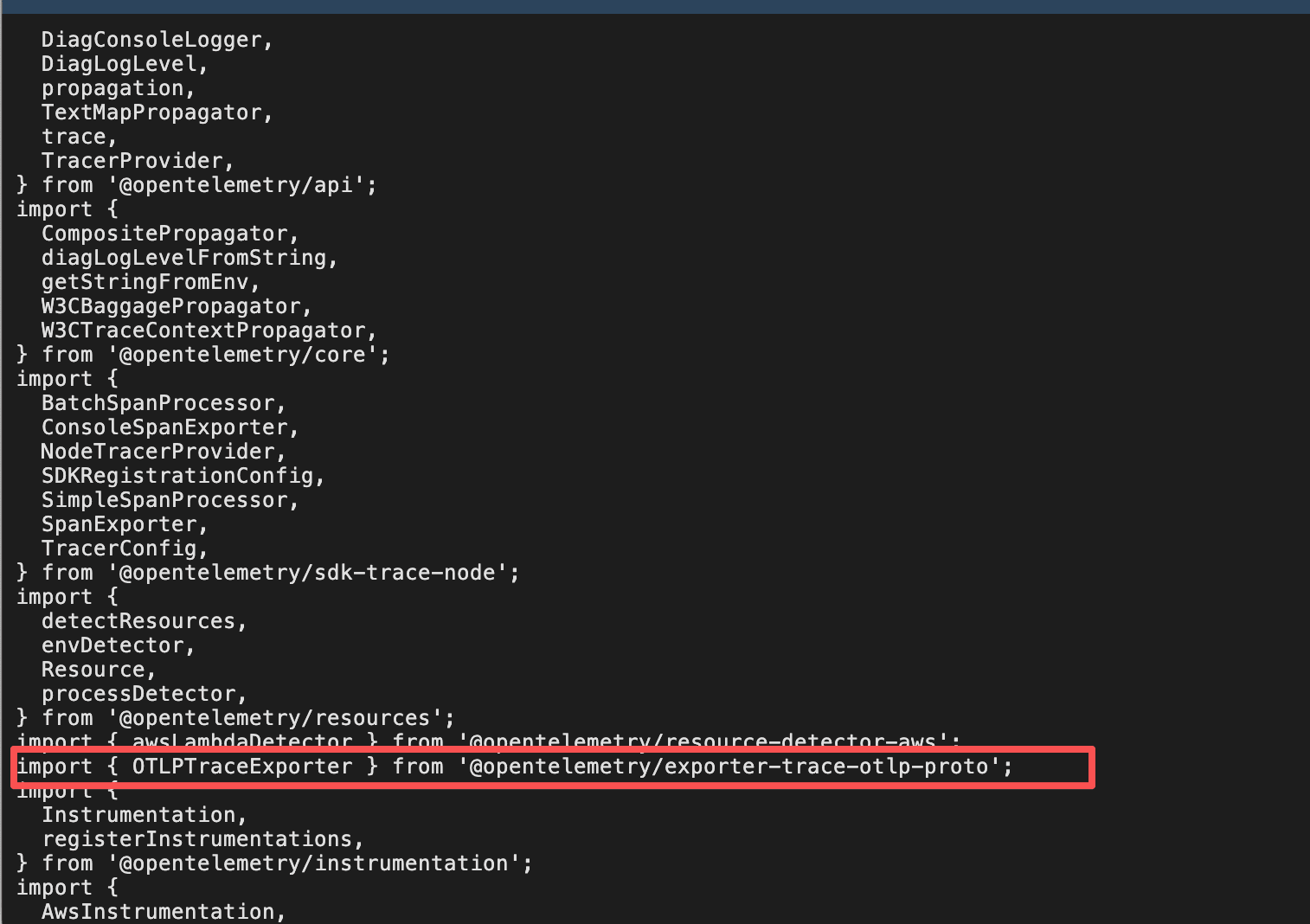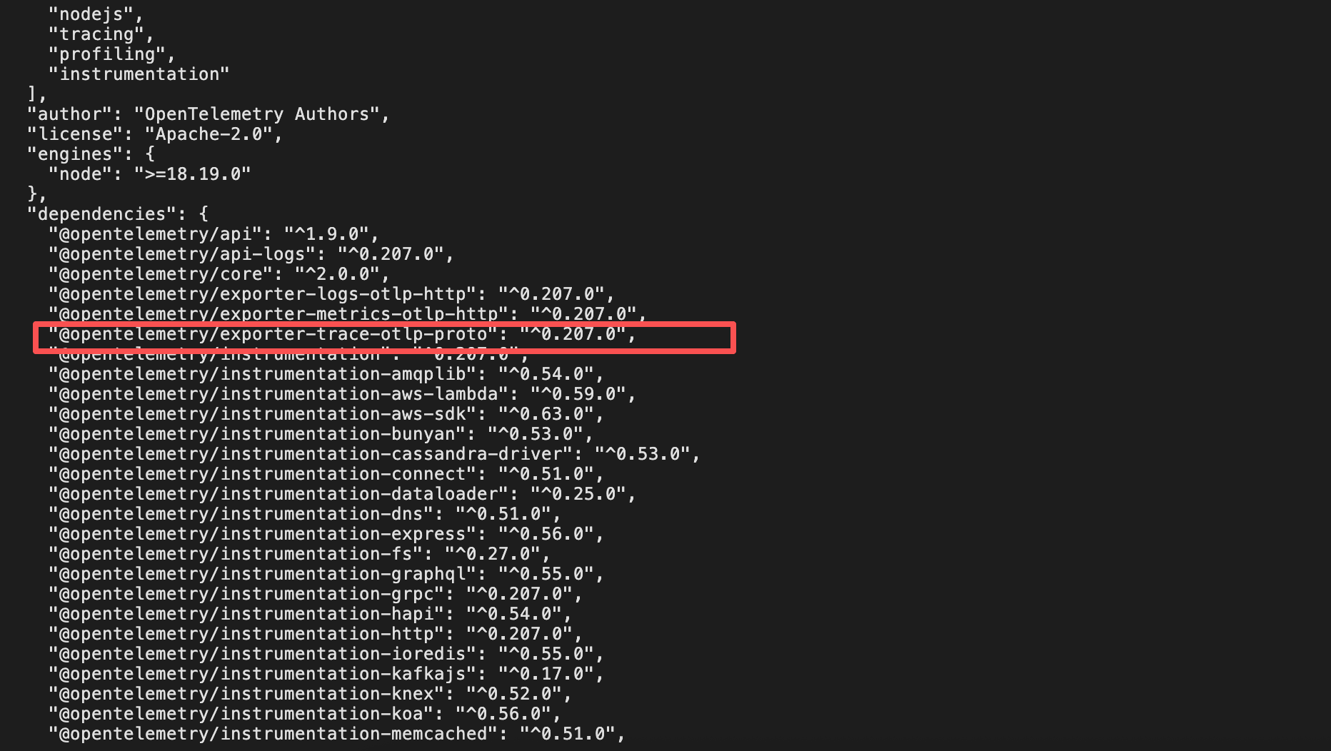 进入项目目录,将相关文件的 @opentelemetry/exporter-trace-otlp-http 改成@opentelemetry/exporter-trace-otlp-proto,一共需要修改 3 个文件。