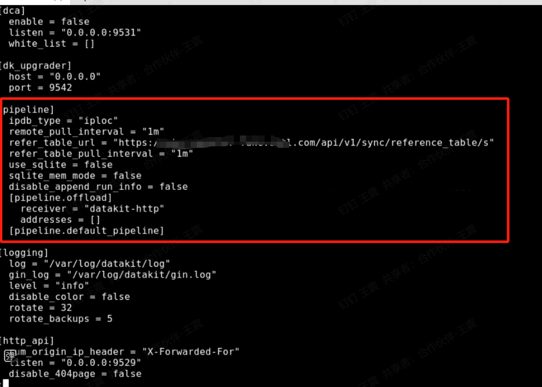 编辑 DataKit 的主配置文件 datakit.conf,配置 Pipeline 下的 refer_table_url 为上一步创建的同步 API 链接。