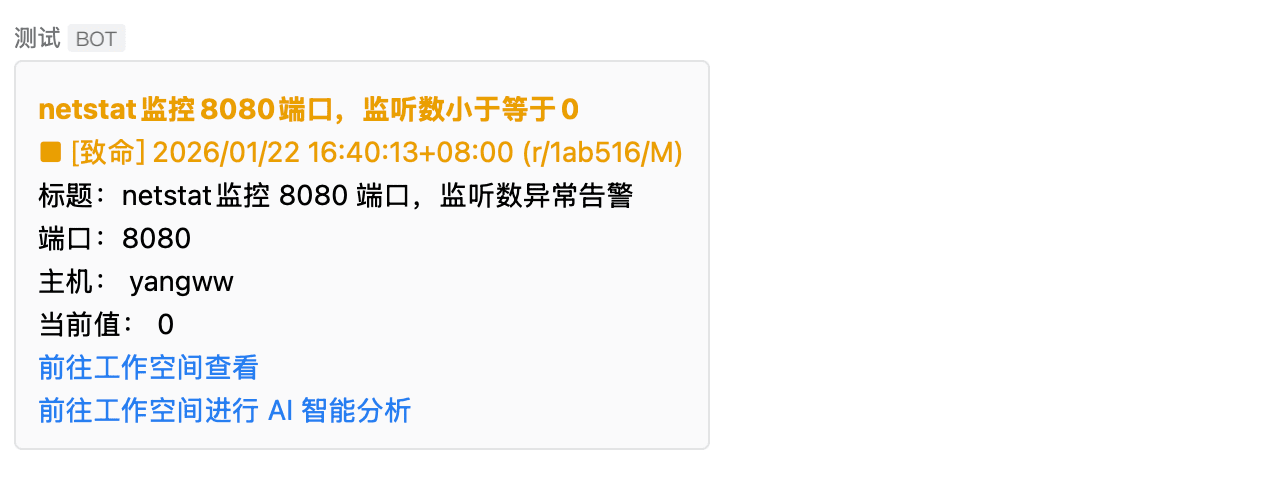 异常触发后,企业微信端成功接收告警通知。