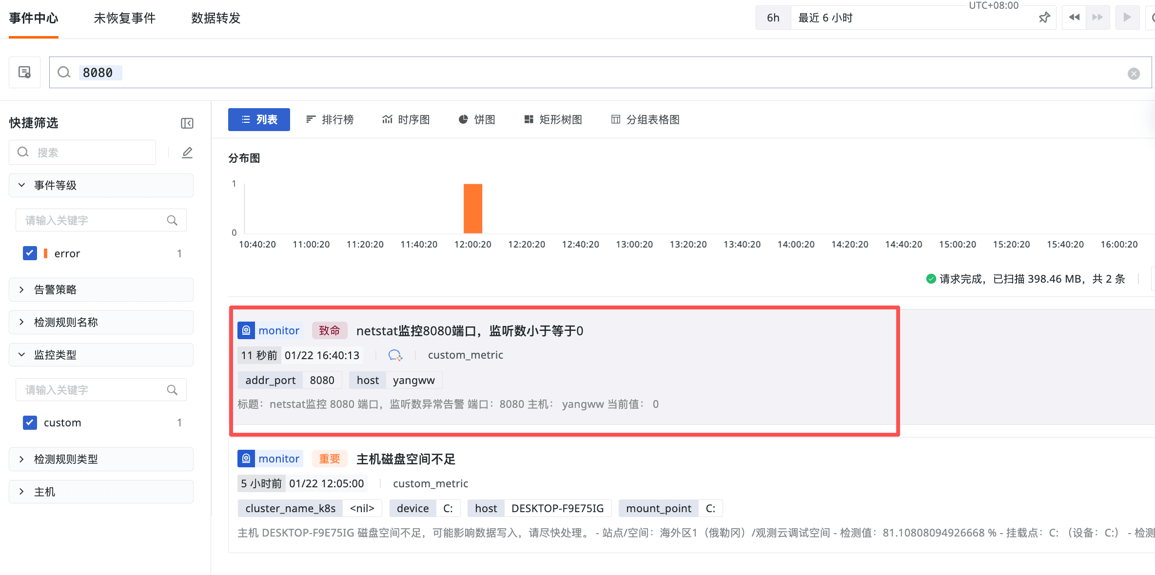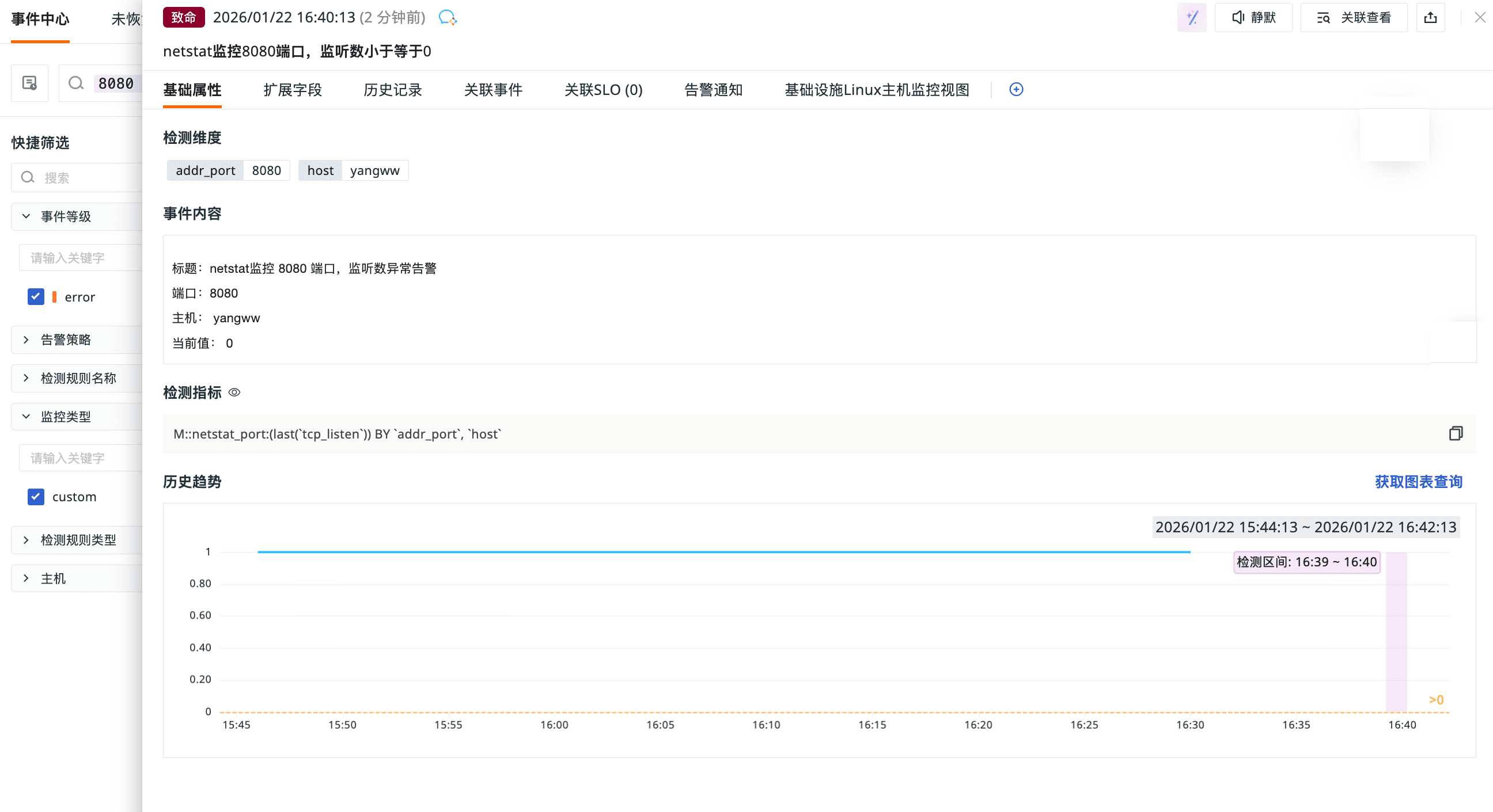 点击告警通知中的「前往工作空间查看」,可跳转到观测云控制台,查看详细的告警事件与指标异常详情。