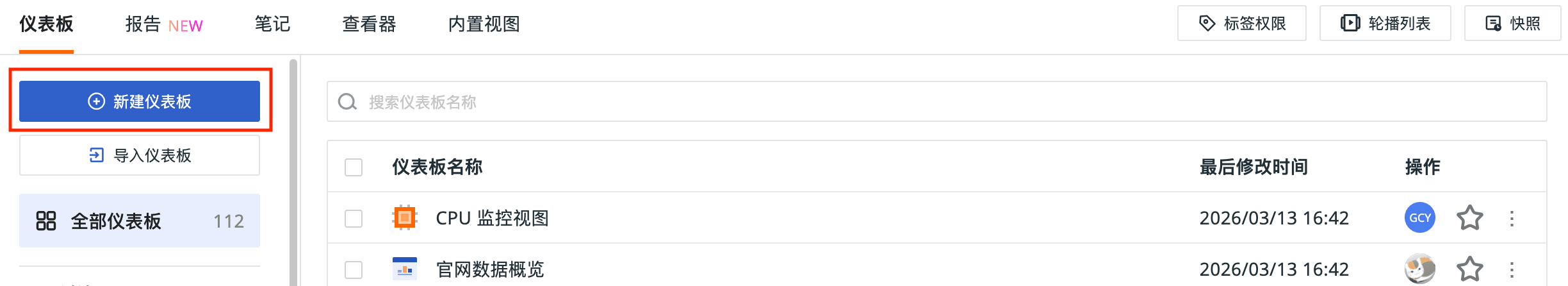 配置仪表板展示数据