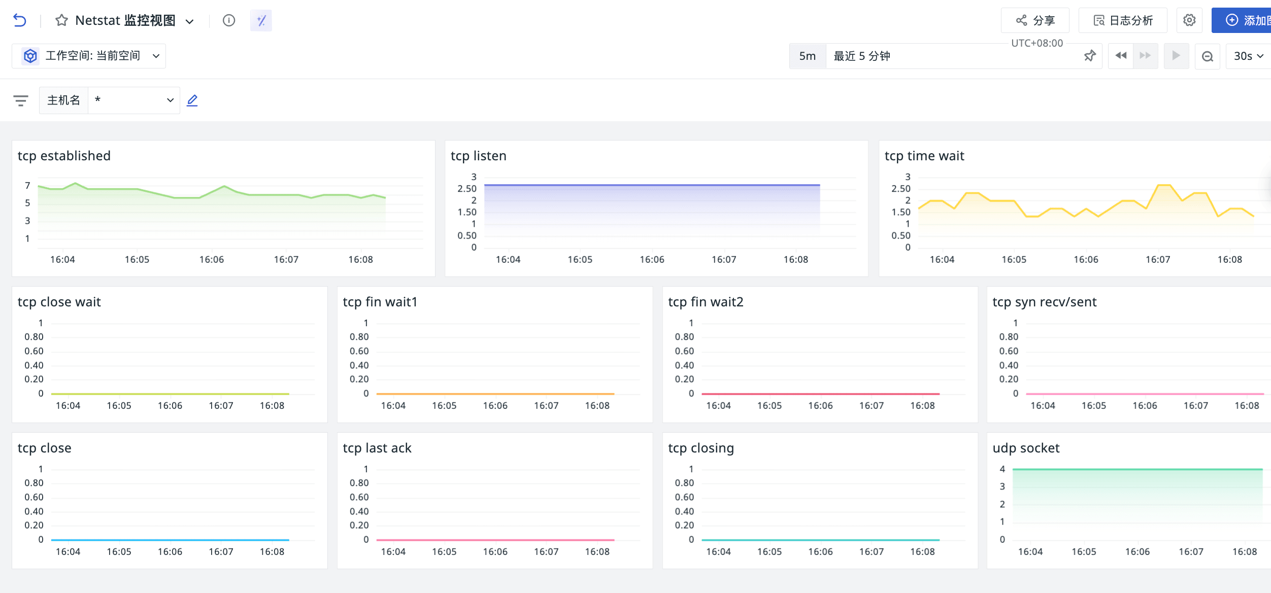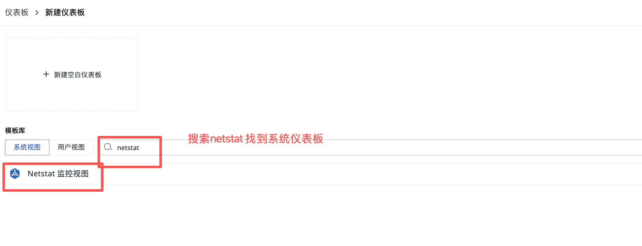 进入观测云控制台,依次点击「场景」→「新建仪表板」,根据业务需求配置 NetStat 指标可视化图表,实现端口监控数据的直观展示。