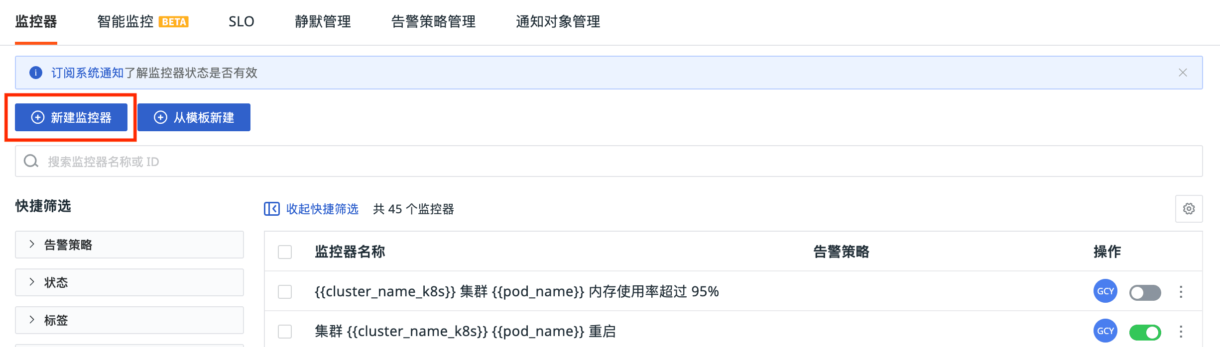配置监控器进行告警