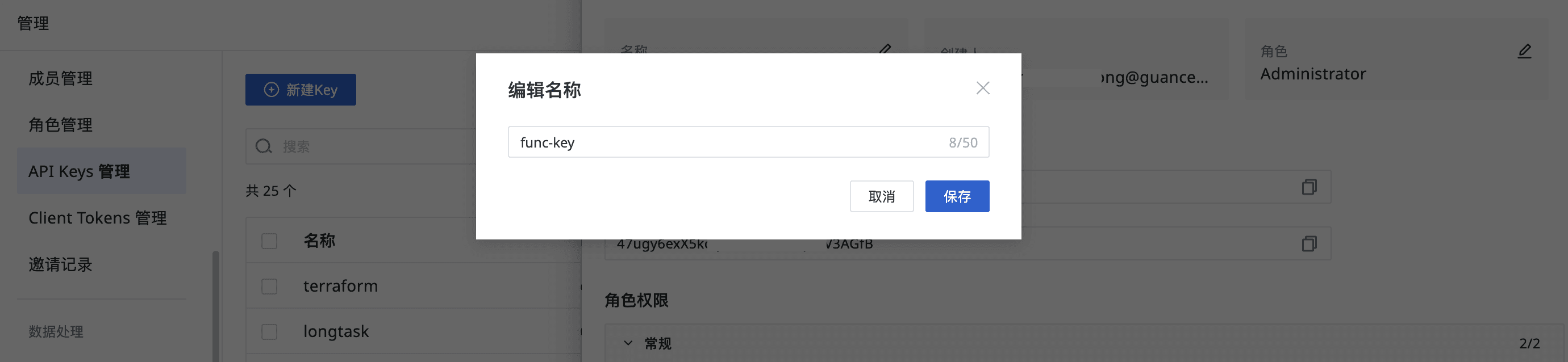 - 支持编辑 API Key 名称与角色;