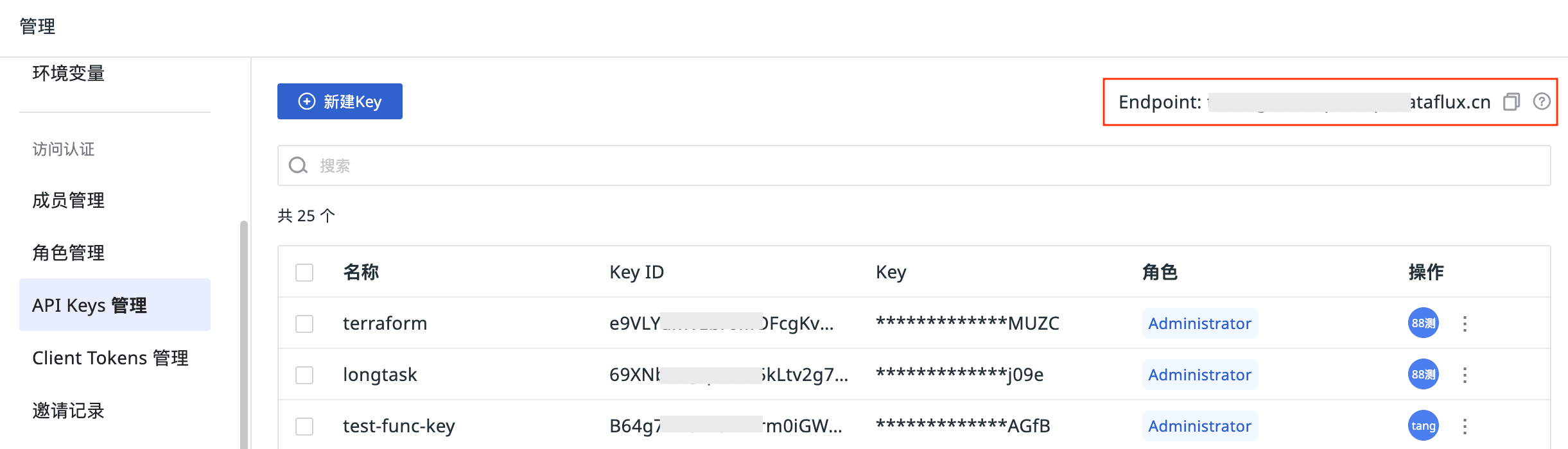 1、API Keys 管理: