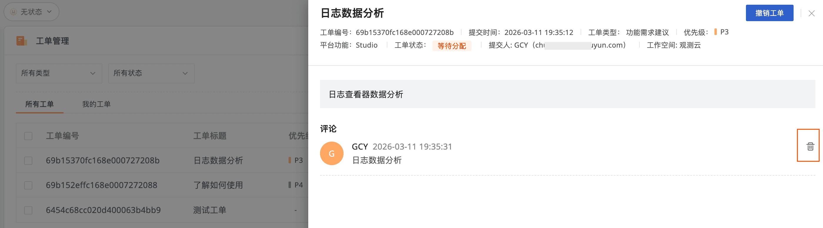 2、工单管理: