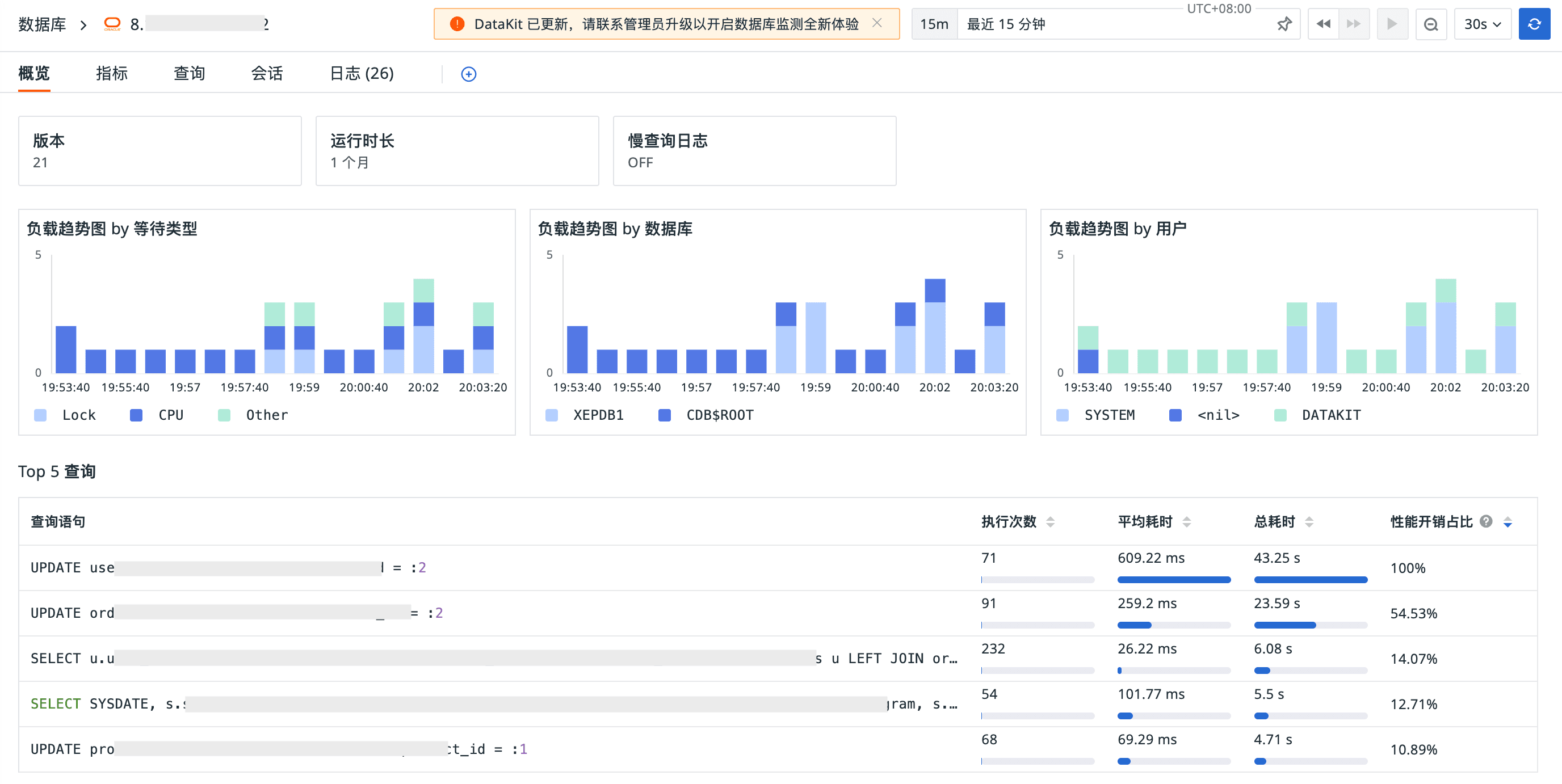 - 概览:新增负载趋势图及高频查询 Top 5