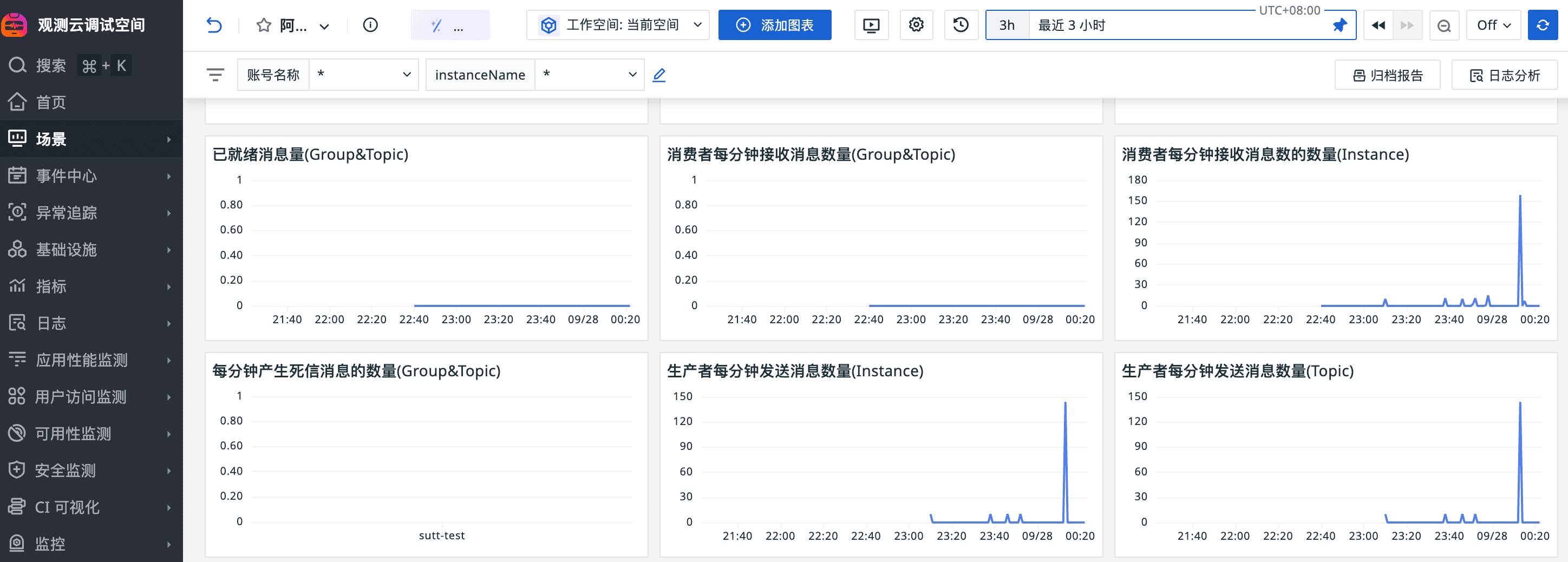 | SendMessageCountPerInstance | 生产者每分钟发送消息数量(Instance) | account_name,InstanceName | Average,Maximum | count/min |