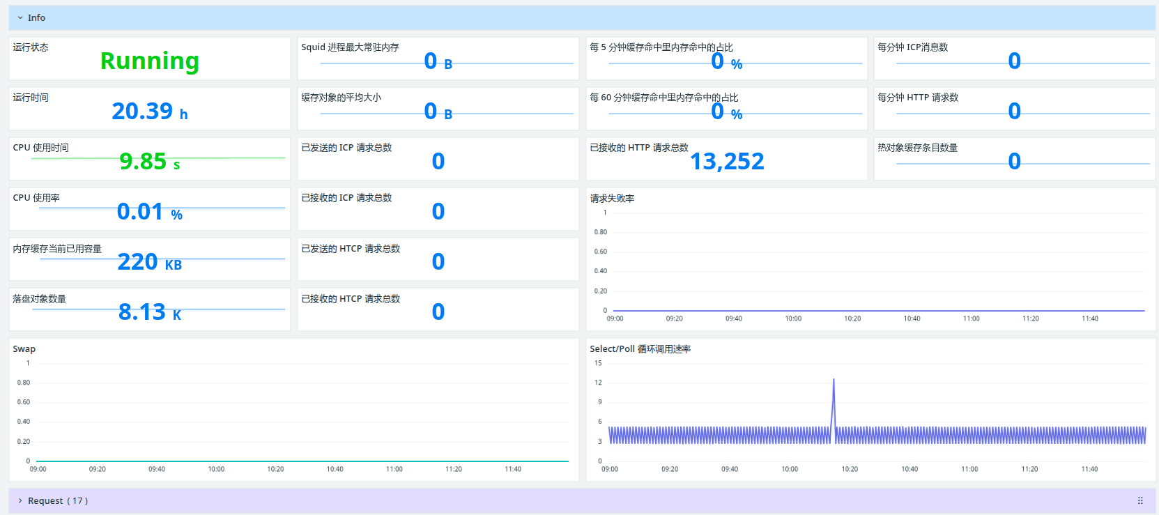 | info_CPU_Time | Squid 进程累计消耗的 CPU 时间 | 秒 |