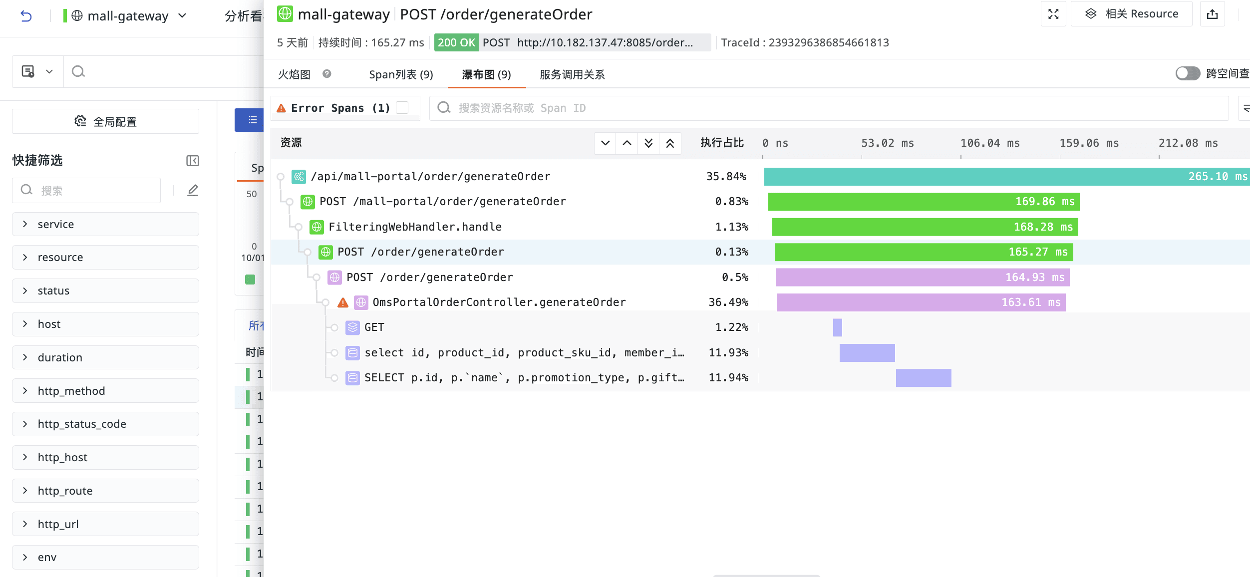 3、后端服务透明化,可以观测到更详细的代码级方法,开发可以快速定位